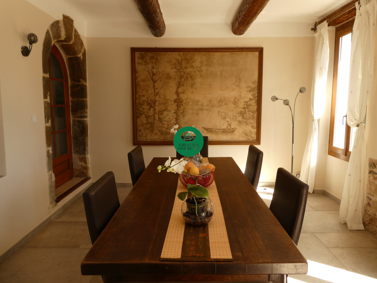 La bâtisse principale bénéficie de 6 chambres spacieuses, chacune avec pièce d’eau et wc privatif (dont 2 salles de bains et 4 salles d’eau). Le salon en pierre brute avec canapés Chesterfield, la salle à manger à l'arche sculptée et le superbe escalier à contremarches confèrent à l'ensemble un cachet particulier et incomparable. Au dernier étage, un niveau avec 3 chambres, cuisine et bureau offre une configuration idéale pour un appartement ,une suite familiale ou un espace de travail .Le bien dispose également d'un studio avec entrée indépendante — parfait pour une location saisonnière immédiatement rentable ou un hébergement d'appoint. En complément, une maison de gardien entièrement cadastrée, avec jardin privatif indépendant, multiplie encore les possibilités : gîte, logement de fonction, studio locatif. Au total, trois entités distinctes et exploitables, pour une flexibilité d'usage rare sur le marché. La cuisine est équipée.