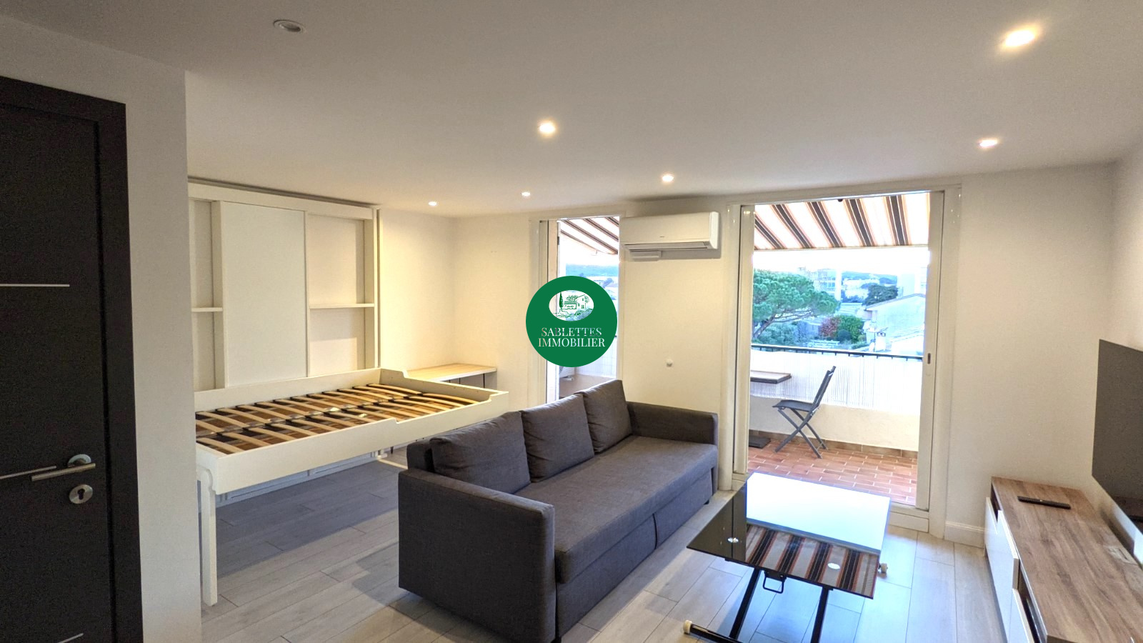 La Seyne-sur-Mer (83500)Au coeur du quartier de Mar Vivo à 5 Mn de la plage, des commerces et des écoles, superbes prestations pour ce 2 pièces transformé en grand studio de 31 M2, situé au 3ème et dernier étage d'une petite copropriété fermée et sécurisée, vous profiterez d'une belle terrasse de 8 M2 exposée Sud-Ouest sans vis à vis avec magnifique vue dégagée sur ND du Mai, ce bien se compose d'une grande pièce de vie avec cusine Américaine équipée, salle d'eau, WC séparés, dressing, fenetres à galandage double vitrages, climatisation réversible, électricité aux normes, aucun travaux à prévoir, parking privatif, idéal secondaire ou 1er achat, coup de coeur assuré.