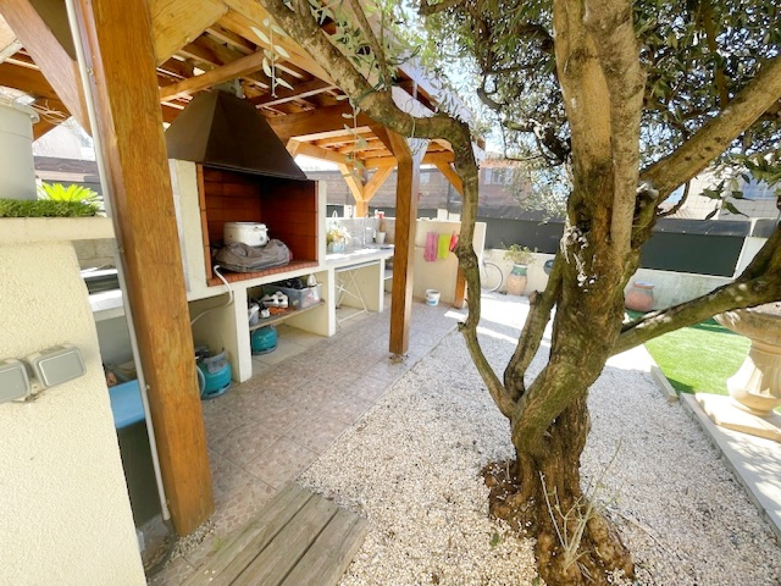 A l'exterieur sur un terrain de 506m2 , vous profiterez sereinement d'une belle piscine , de sa cuisine d'été entièrement aménagée et d'une belle terrasse exposée sud-est .