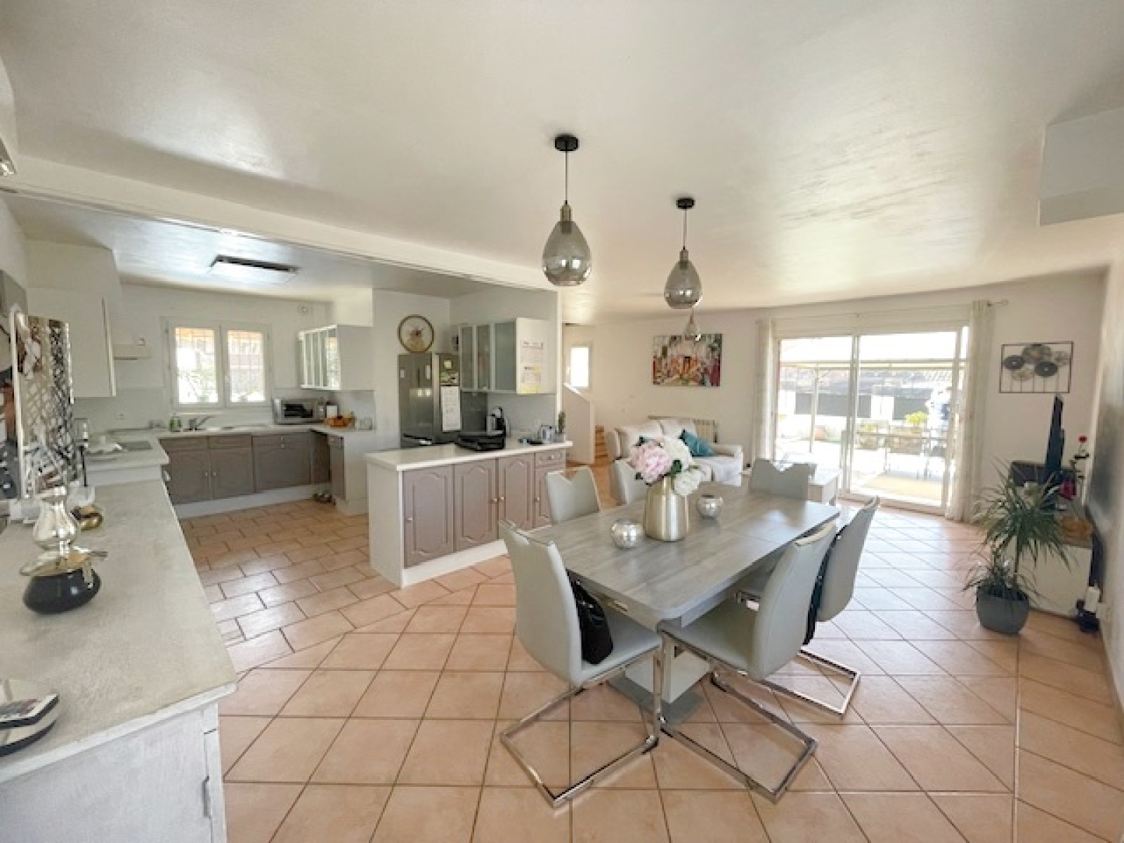 Maison de 105 m² composée d'un lumineux salon - séjour et d'une cuisine ouverte entièrement équipée et aménagée de 50 m2 .