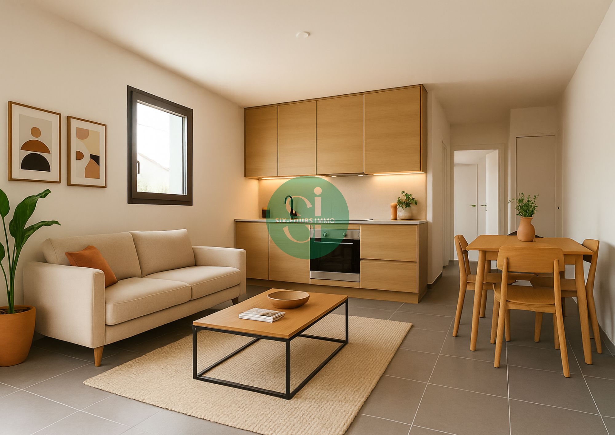Il se compose d’un hall d’entrée, d’un espace de vie lumineux de 19,80 m² avec salon/séjour et cuisine ouverte (à aménager) donnant sur une agréable terrasse exposée OUEST d’environ 9,80 m², deux chambres, une salle d’eau avec fenêtre et un WC séparé.
