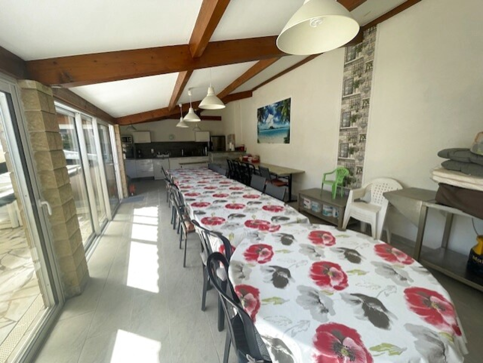 Comprenant 3 chambres , une cuisine équipée semi-ouverte , un salon -séjour ouvert sur une terrasse , une grande buanderie , un wc et une salle d'eau .