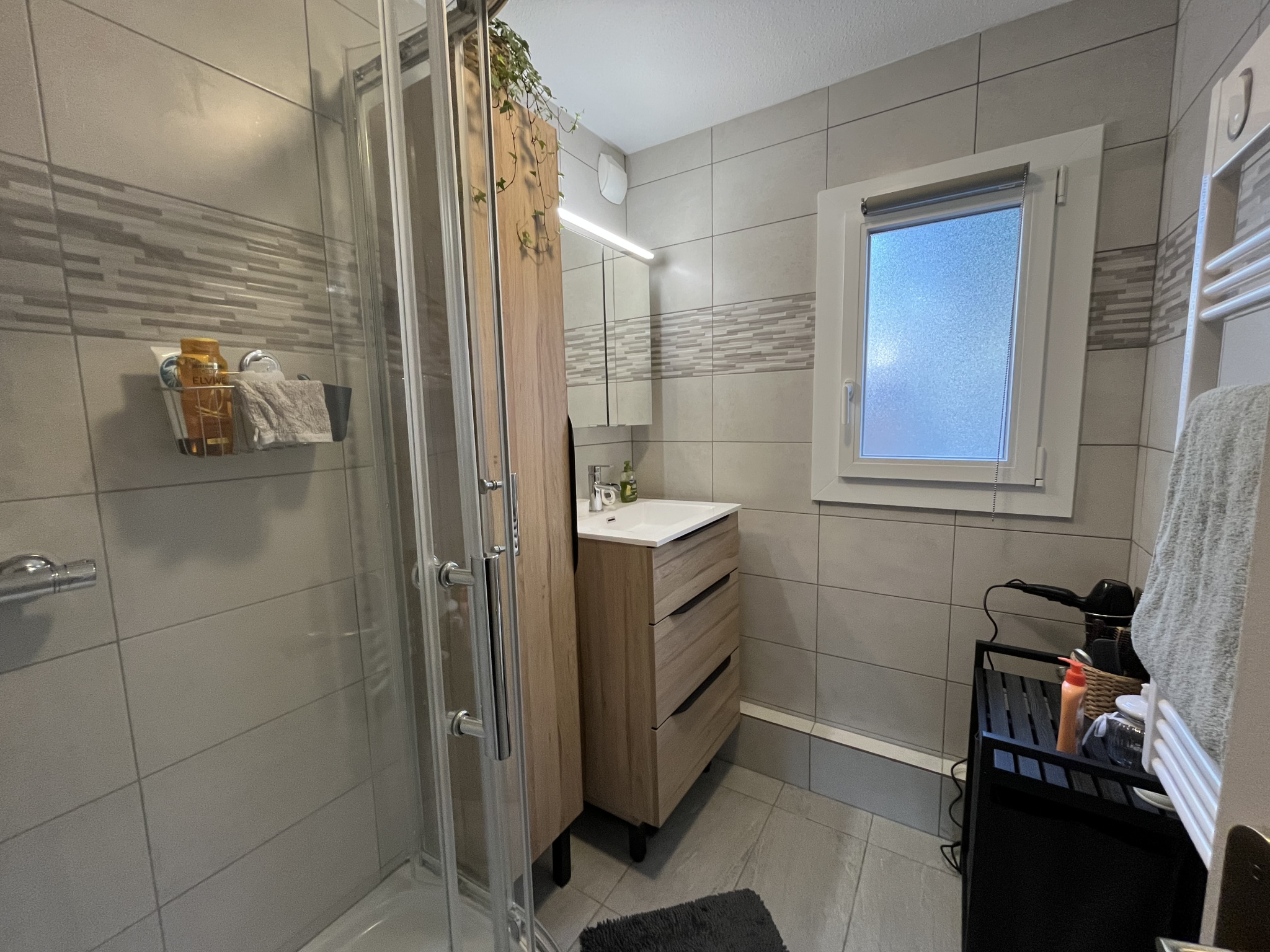 D'une belle chambre séparée avec rangement , d'une salle d'eau à l'italienne et d'un wc séparé .